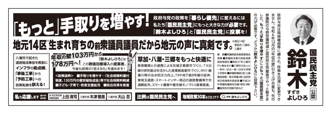 - 「手取りを増やす」政策を実現するためには国民民主党が必要です。鈴木よしひろさんにインタビュー